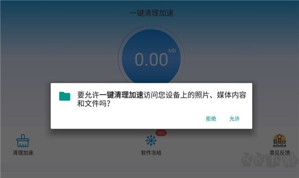 3、第三步,點(diǎn)擊允許一鍵清理加速訪問您的照片、媒體內(nèi)容和文件。
