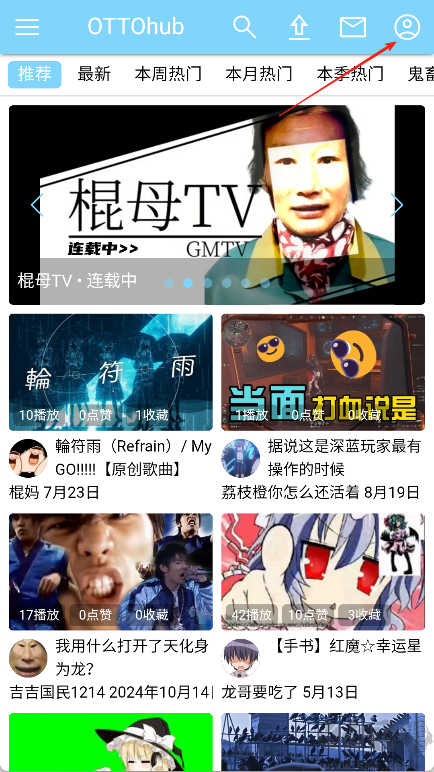 1、啟動ottOHub應(yīng)用,輕觸右上角頭像標識。