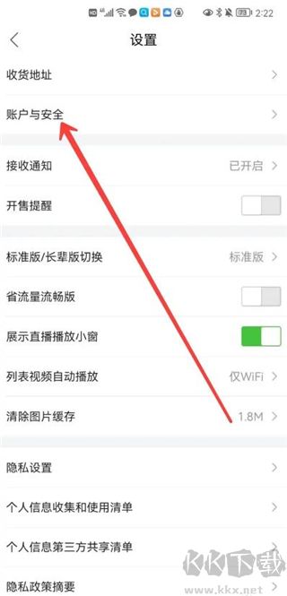 3、選擇“賬戶與安全”