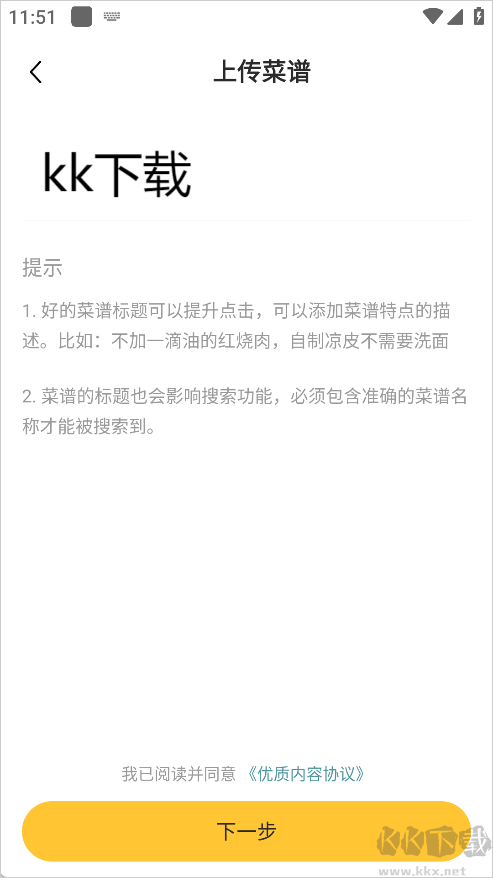 3、為您的食譜設(shè)置名稱,點擊下一步