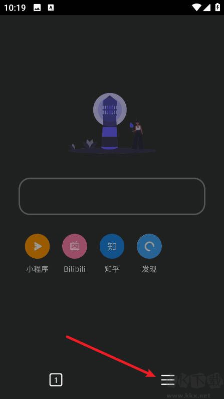 1、進(jìn)入燈塔瀏覽器手機(jī)版后點(diǎn)擊下方三條杠。