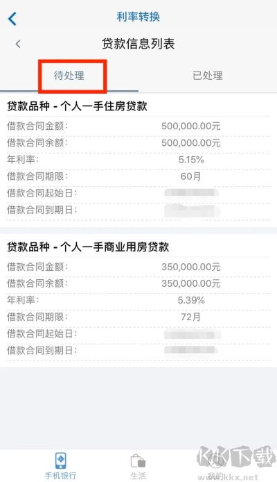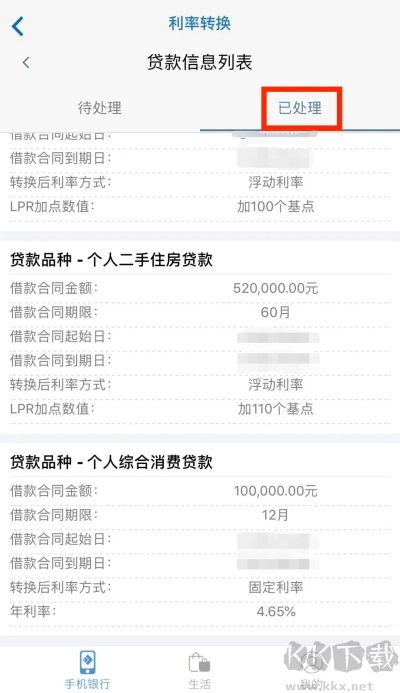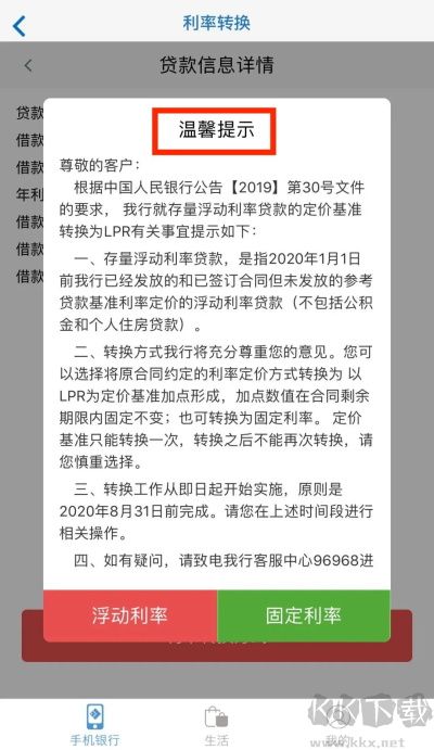 5、選擇需轉(zhuǎn)換的貸款,點擊“浮動利率”或“固定利率”