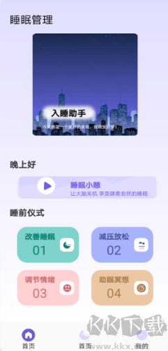1、打開(kāi)應(yīng)用,首頁(yè)提供多種睡眠管理功能入口;