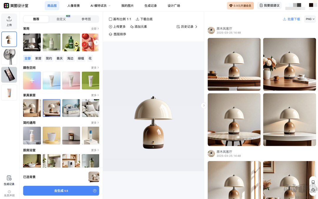 1、AI商品圖:上傳產(chǎn)品圖片,AI自動(dòng)生成多場(chǎng)景營(yíng)銷圖像;