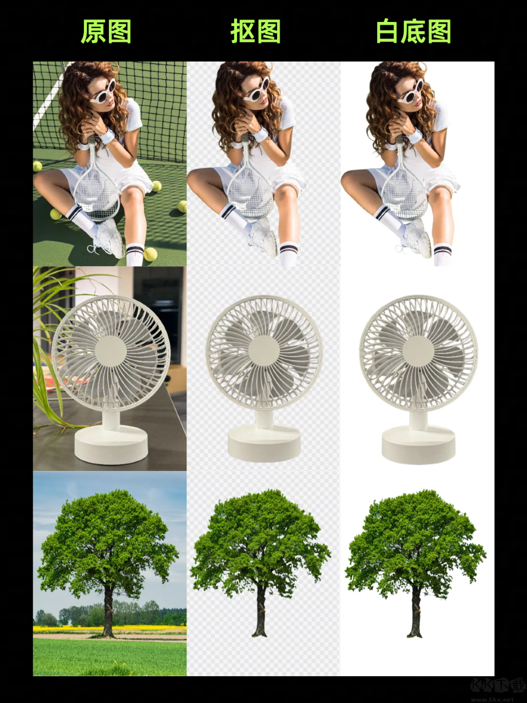 3、智能摳圖:支持全品類識(shí)別,快速完成背景去除;