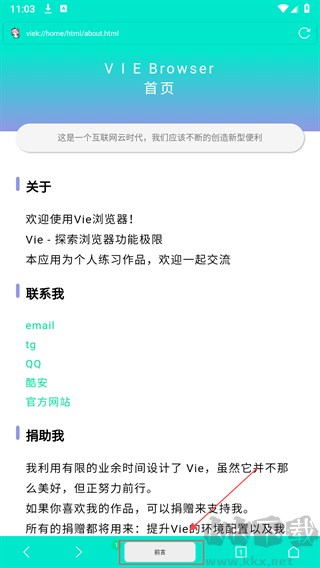 1、啟動(dòng)Vie瀏覽器應(yīng)用,進(jìn)入主界面。