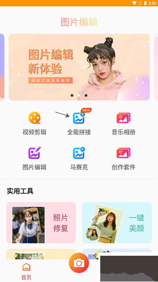 1、打開軟件,在主頁點擊【全能拼接】功能,進入界面。