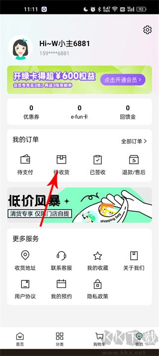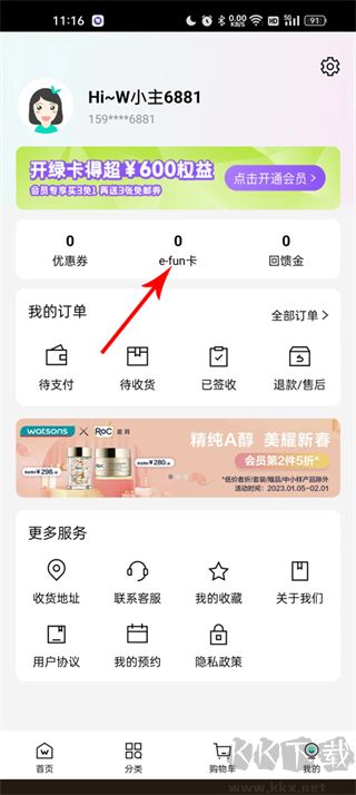 1、在“我的”頁(yè)面中找到“e-fun卡”并點(diǎn)擊
