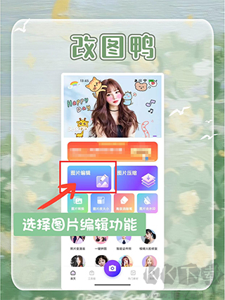 1、打開(kāi)改圖鴨Pro應(yīng)用,在首頁(yè)選擇“圖片編輯”服務(wù);