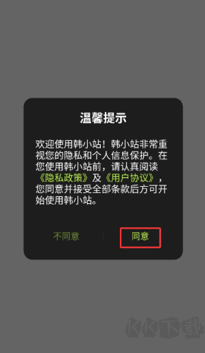 1、首次打開應(yīng)用時將顯示用戶協(xié)議,選擇“同意”后即可進入主操作界面;