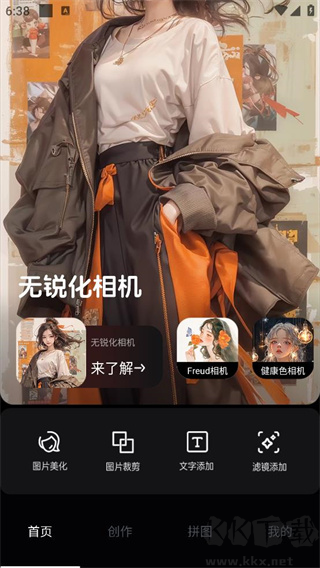 1、啟動無銳化相機(jī),可選擇拍攝新照片或?qū)氍F(xiàn)有圖片,選擇濾鏡與視覺效果;