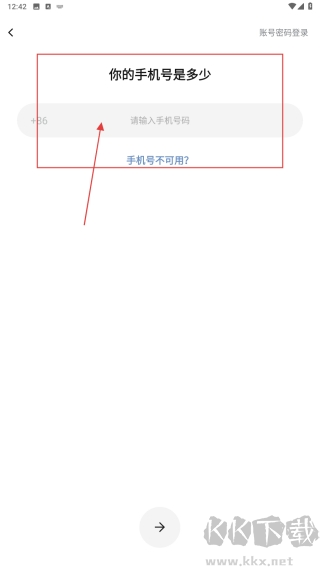2. 點(diǎn)擊"輸入手機(jī)登錄"按鈕,進(jìn)入手機(jī)號填寫頁面。