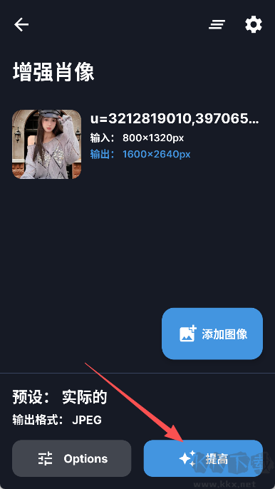 5、設(shè)置好畫質(zhì)與輸出格式后,點(diǎn)擊“提高”按鈕就能完成增強(qiáng)。