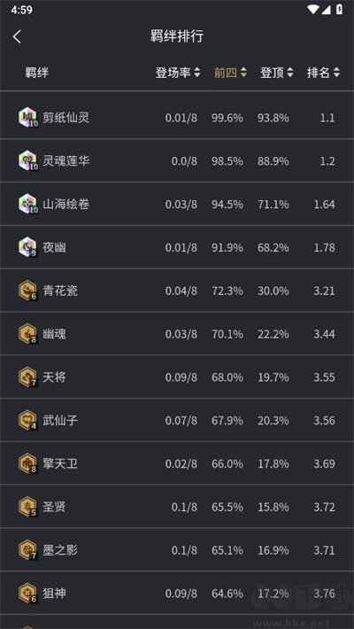 4、查看羈絆、英雄與裝備的熱度及排名數(shù)據(jù);