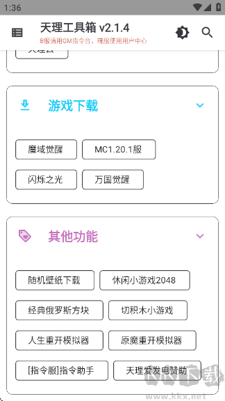 5、休閑游戲:內(nèi)置2048、俄羅斯方塊、人生重開模擬器等趣味小游戲。
