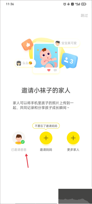 1、打開應(yīng)用,先為您的孩子填寫基礎(chǔ)信息,保存后即可開始邀請家人。您可邀請父母,也可選擇“更多家人”;