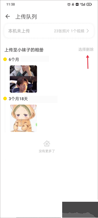 2、在此可瀏覽按時間排列的相冊目錄,輕點“選擇刪除”;