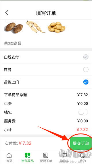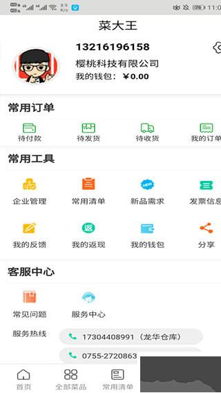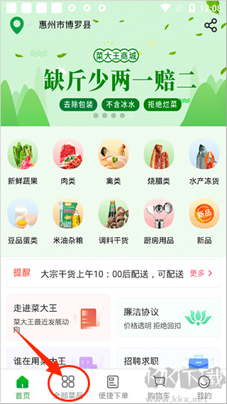 打開菜大王App,點擊下方“全部菜品”欄目,瀏覽不同分類的食材,選擇想要的商品。