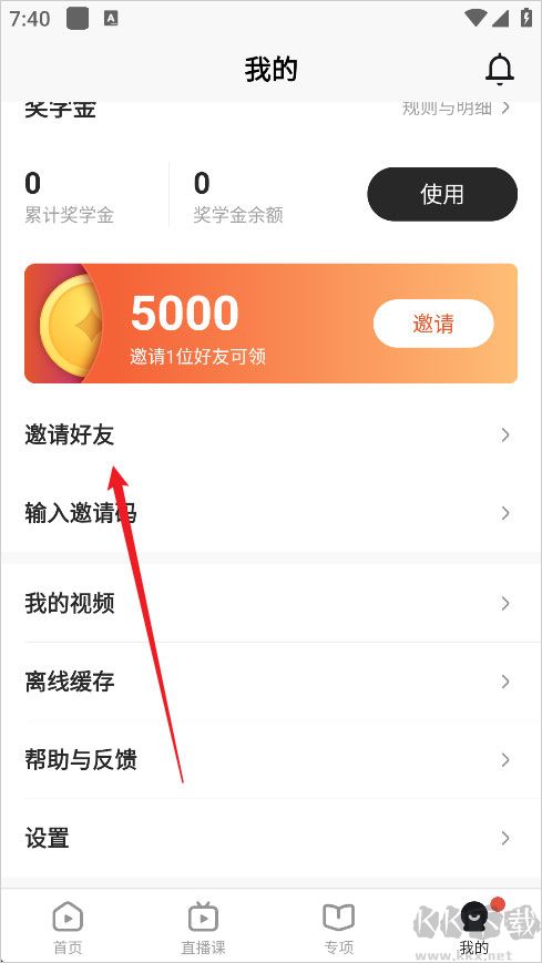 2、在【我的】頁面找到【邀請好友】,點擊進入。