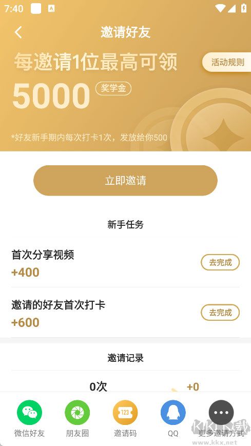 3、在【邀請好友】頁面選擇【立即邀請】,點擊分發(fā)到要邀請的平臺即可完成。