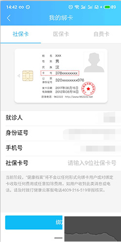 3、可自行選擇綁定社???、醫(yī)??ㄒ约白再M(fèi)卡完成綁定。