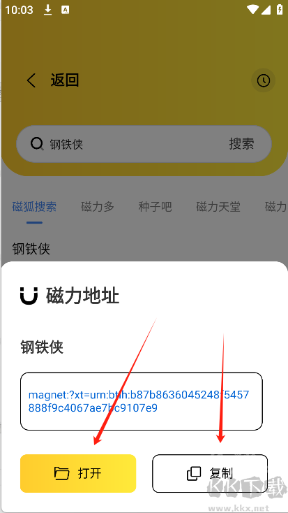 7、輕點對應磁力鏈接,可選擇打開或復制操作