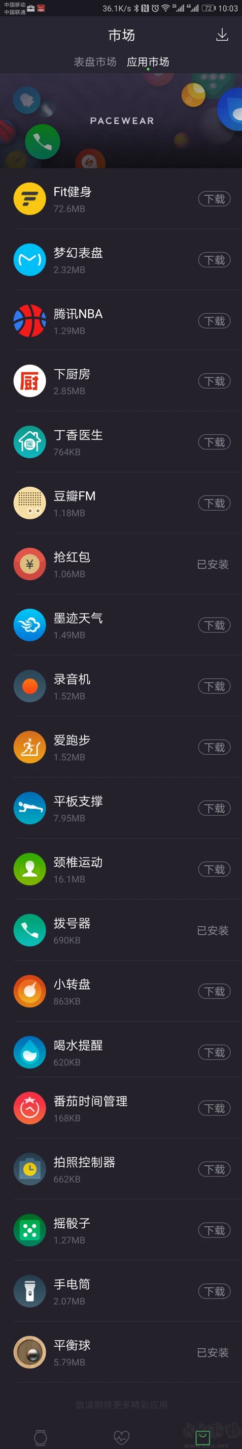 2、表盤商店提供數(shù)十種表盤樣式,并能安裝第三方表盤資源,平常使用完全足夠。