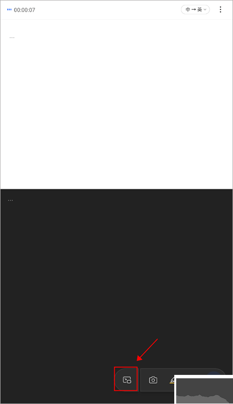 3、點擊下方的 “懸浮字幕” 按鈕,app 轉(zhuǎn)寫翻譯的文字會自動縮小成 “懸浮字幕” 框。