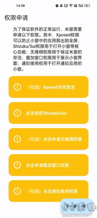 6、完成所有權限設置后,點擊 "下一步" 即可開始使用。