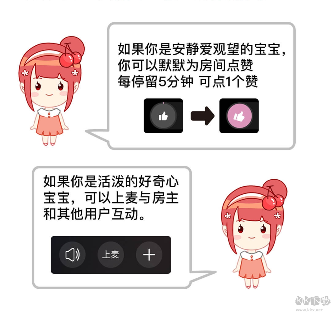 可自由建立多種主題空間,在普通房間中配對伙伴、閑話家常,不論是多人語音暢聊興趣話題,還是高清同步聯(lián)機打游戲,總能找到陪你盡興的同伴;在音樂房間內(nèi)共享旋律,五湖四海的朋友因同一份歌單相聚,同一刻聆聽同一首曲子,也許正是這種特別的溫情;在陪伴房間中,跨越地域阻隔,與那個特別的Ta共度親密時光,心動的感覺悄然彌漫心間。