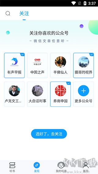 1、進(jìn)入愛聽書app,可以關(guān)注喜歡的公眾號。
