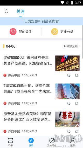 愛聽書最新版整合高品質(zhì)資訊內(nèi)容,精心打造每日早報(bào)、夜聽時(shí)光、隨時(shí)收聽、熱門榜單等專屬欄目,滿足您對特定主題內(nèi)容的深度聆聽需求。