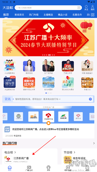 大藍鯨app是一款視聽互動服務軟件,擁有江蘇廣播電視臺的優(yōu)質(zhì)內(nèi)容,可以在線收聽各類廣播節(jié)目、歌曲、小品等音頻資源。還提供大量精品視頻內(nèi)容,不局限于單一廣播形式,豐富用戶的精神生活。它實時推送江蘇本地時事新聞,還涵蓋國內(nèi)外時事、財經(jīng)動態(tài)、娛樂八卦等全面的新聞資源,能滿足多數(shù)用戶獲取新聞的需求。需要的朋友快來下載試試吧!