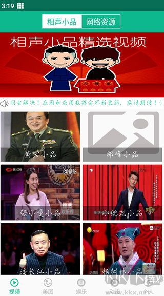 1、打開下載好的app,在視頻欄目中有各種經(jīng)典相聲小品推薦;