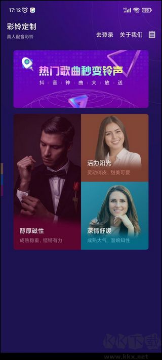 彩鈴定制app是一款支持真人配音的私人定制手機彩鈴軟件。收錄大量新歌熱曲,提供醇厚磁性、活力陽光、深情舒緩等多種風(fēng)格的聲音,能輕松適配不同用戶的需求。具備強大的音樂裁剪功能,無論你偏愛抖音神曲、熱門流行音樂,還是個性搞笑配音、華語金曲、歐美日韓歌曲,都能在這里找到。你也可以直接搜索歌名、歌手或鈴聲名稱,然后一鍵完成設(shè)置,操作簡單又快捷。喜歡的朋友快來下載試試吧!