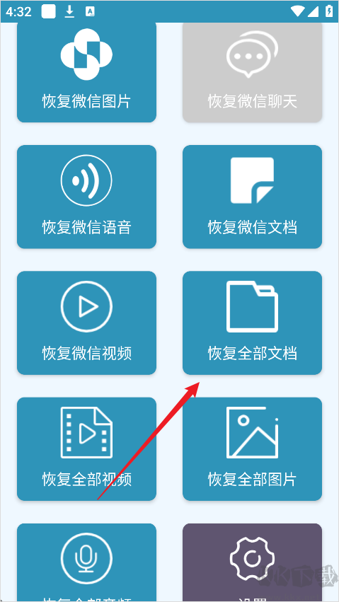 1、打開軟件,在主界面中選擇“恢復(fù)全部文檔”功能