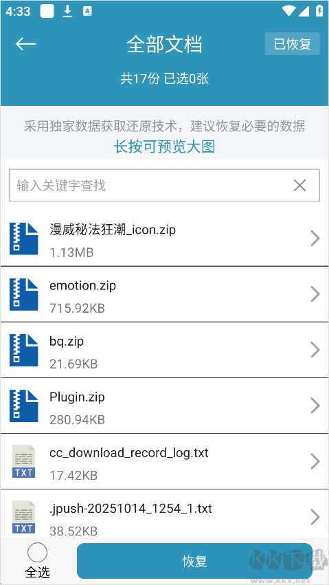 5、界面清晰,恢復(fù)過程可視化,可預(yù)覽待恢復(fù)內(nèi)容,避免盲目操作。
