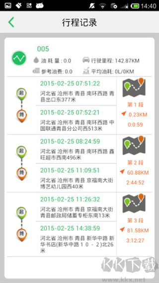 4、點(diǎn)擊行程記錄就能查看每個(gè)時(shí)間段的行程。