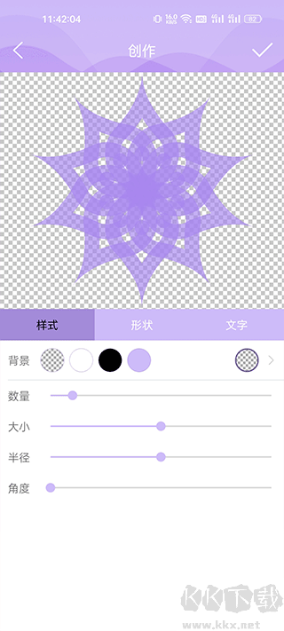 2、初始狀態(tài)會顯示一個圖形,在此可挑選背景款式,調(diào)整圖形的數(shù)量、尺寸、半徑以及角度。