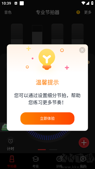 節(jié)拍器app是一款專業(yè)的節(jié)拍器和調(diào)音器軟件,可以輔助用戶進行日常樂器節(jié)奏練習,還可以作為樂器高階訓練的工具。里面提供多種節(jié)拍供選擇,支持切換不同音色。軟件還具備自動調(diào)速功能,可以自行設定節(jié)拍增加的時間、速度等參數(shù),實用性很強。需要的朋友快來下載試試吧!