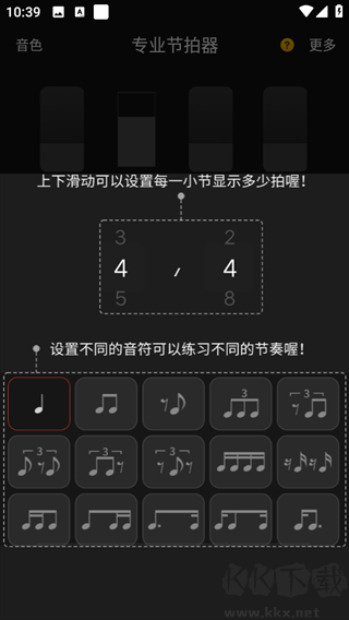 內(nèi)置常用拍號快捷選項,也可自定義設置任意拍號,靈活適配各類樂曲需求。