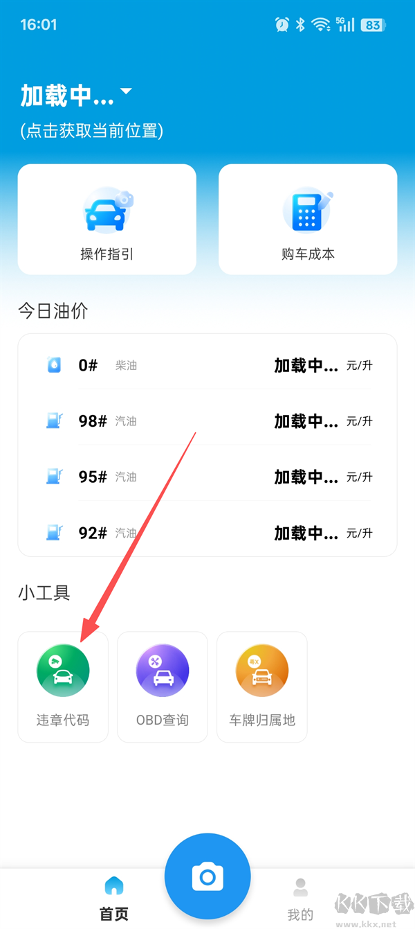 1、打開(kāi)隨手拍違章App官方版,點(diǎn)擊【違章代碼】