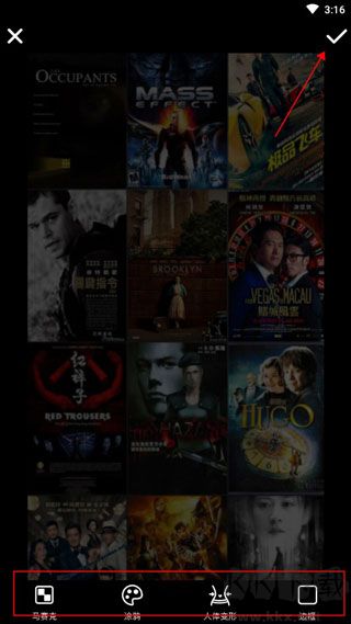 5、另外,點擊主界面的實用工具,,可以對圖片進行馬賽克、涂鴉、人體變形、邊框的添加,編輯完成后,可以點擊右上角的√保存;
