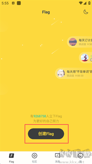 1、打開臉疼App,點擊創(chuàng)建Flag。