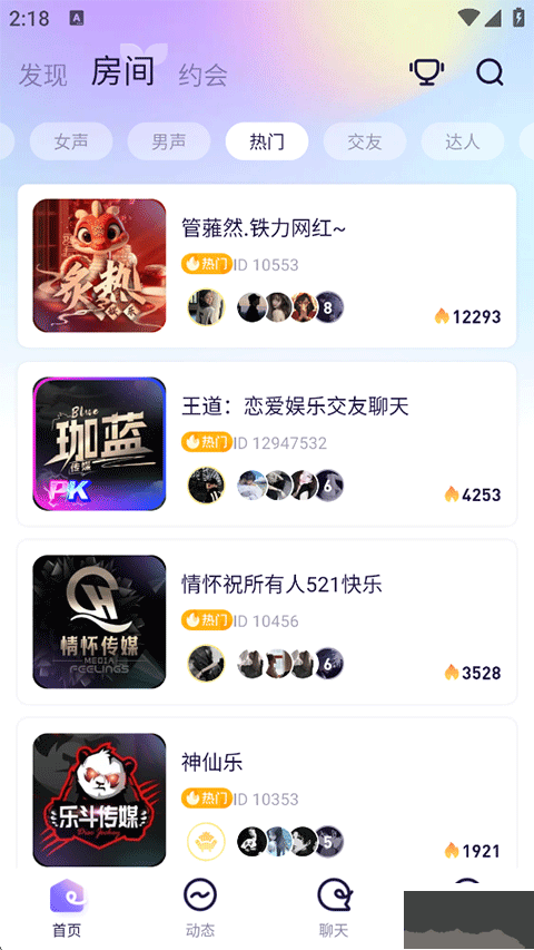 多樣語音房間玩法,CD級高保真音質(zhì),寶藏歌手傾情獻唱,男神女神趣味連麥,輕松遇見心動的TA!
