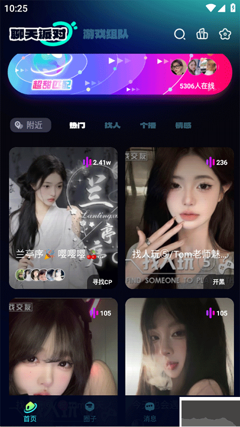 1、啟動程序進(jìn)入主界面,可見兩大板塊,分別為交流聚會與游戲搭檔。