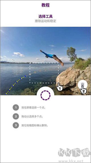 4、擦除運動和穩(wěn)定:按住屏幕選擇一個點,拖動以選擇多個點,按垃圾箱圖標(biāo)確認(rèn)刪除;