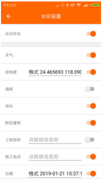 2、做施工記號、記錄經(jīng)緯度、海拔、方位角度、地理位置、天氣、工程信息及自定義備注等;多種不同行業(yè)風格的水印可選。