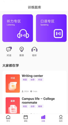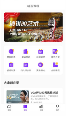 7、涵蓋生活口語、四六級口語、商務英語、外貿英語、演講辯論、出國留學、職場英語等模塊,一站式滿足學生備考、留學、求職、個人提升等學習需求,在強化聽說技能訓練的同時,培養(yǎng)文化溝通力、批判性思維以及職業(yè)素養(yǎng)