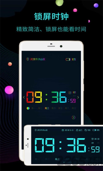 4、超大模擬時鐘、數(shù)字時鐘全屏顯示在手機上,簡潔大氣